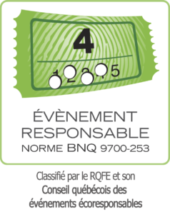 L’événement Les Vivats, les prix pour les événements responsables présentés par LOTO-QUÉBEC et RECYC-QUÉBEC est classifié selon la norme BNQ 9700-253 au niveau 4.